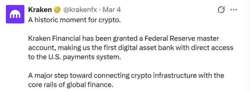 1/ Kraken Gets A First for Crypto Fed Master Account