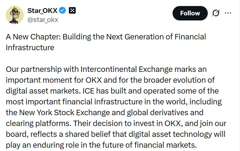 2/ NYSE's Parent Bets on OKX at $25B, Tokenized Stocks Are Next