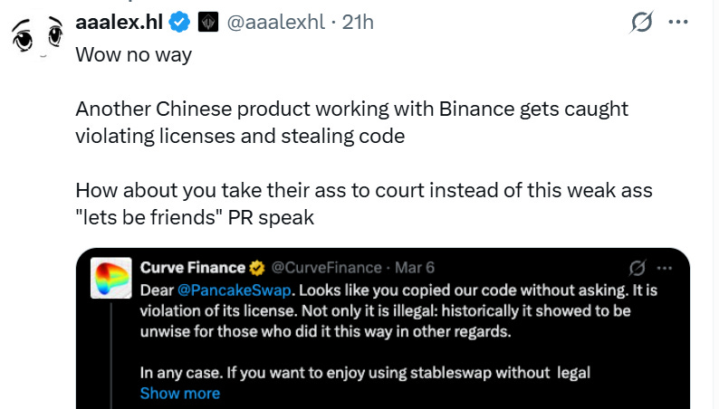 3/ Curve vs PancakeSwap - DeFi's Code Theft Problem Isn't New